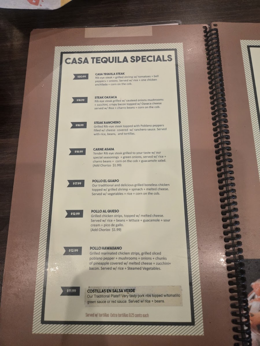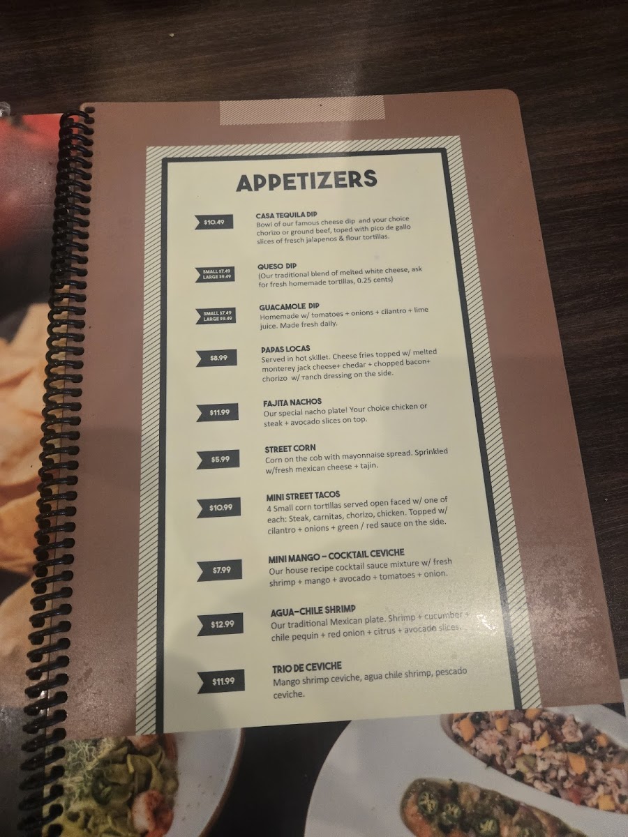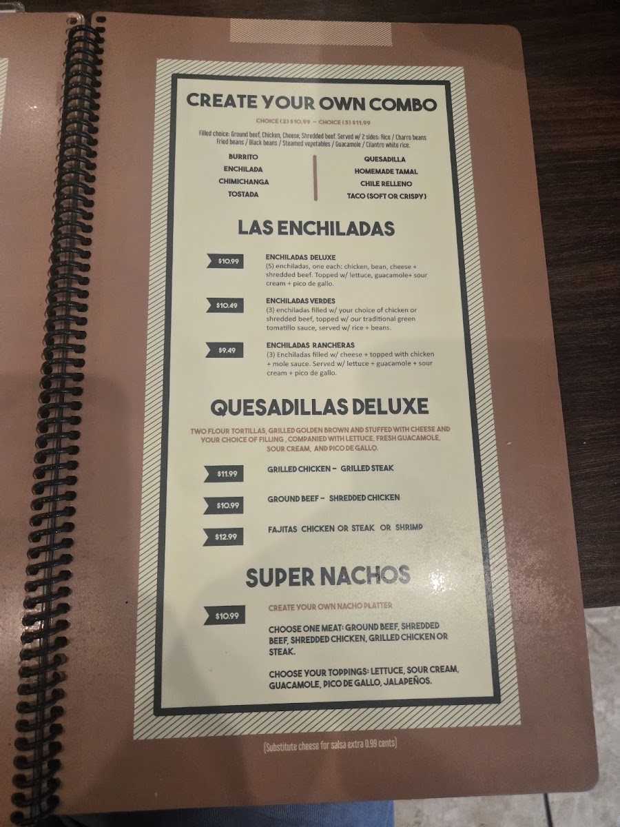 Build your own combo with three items: burritos, tacos, enchiladas, and more. Choose fillings: cheese, chicken, or beef. Includes two sides like beans, rice, or guacamole.