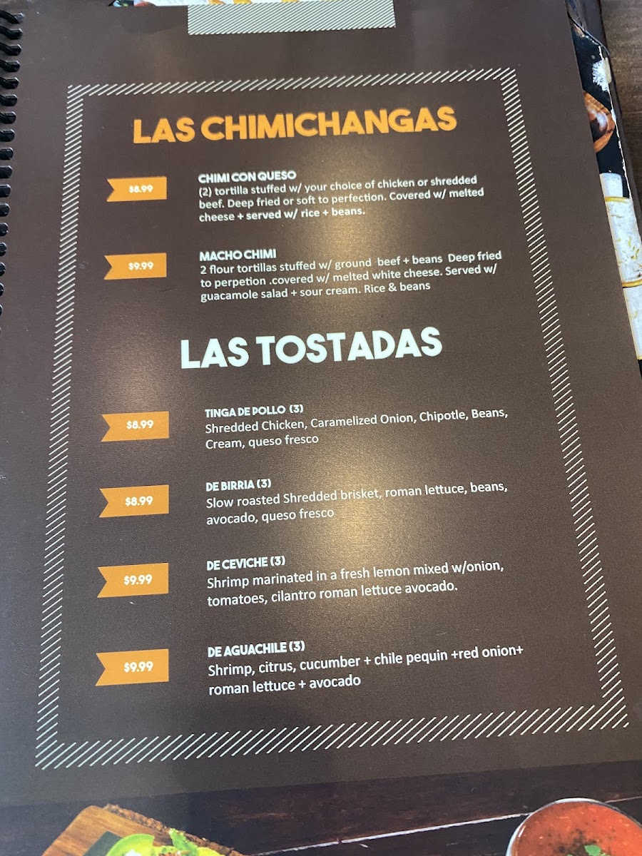 Same as chimi con queso but includes lettuce + guacamole + sour cream + pico de gallo.
